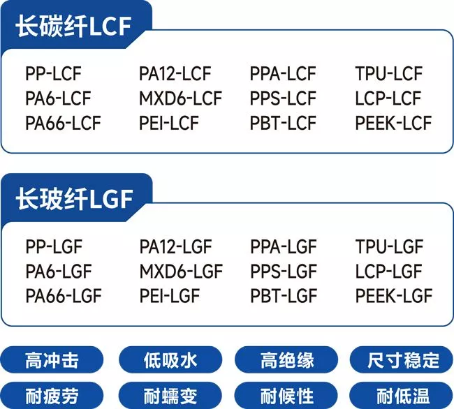 汽车工业:长玻纤 PP/PA66 系列用于天窗骨架、中央扶手、散热系统、门板、副仪表总成等,实现部件减重超过 30%,助力新能源车续航提升 8%-12%;长碳纤增强 PP 凭借高模量、低膨胀特性。