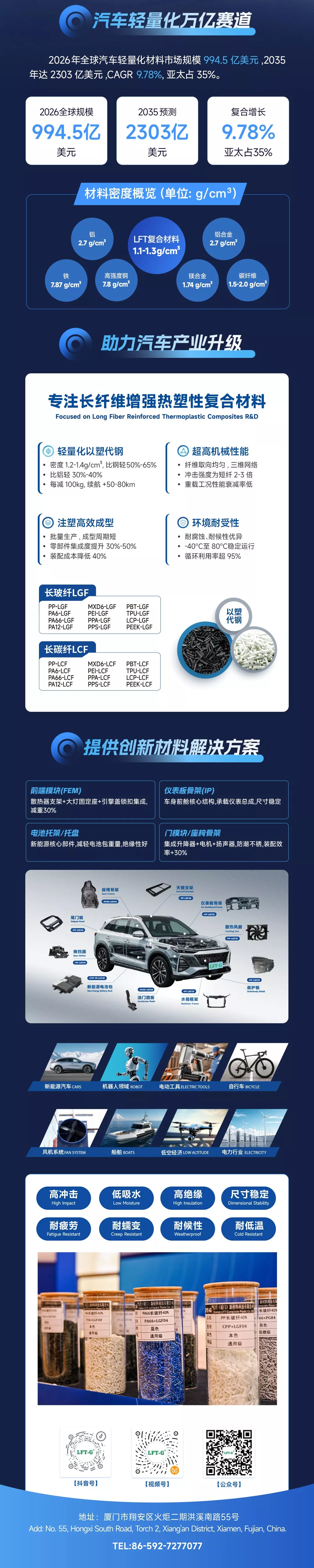 近年来,汽车行业对长玻纤(Long Glass Fiber, LGF)和长碳纤(Long Carbon Fiber, LCF)的广泛应用,主要源于新能源汽车对轻量化、高强度、高安全性及可持续性的迫切需求。
